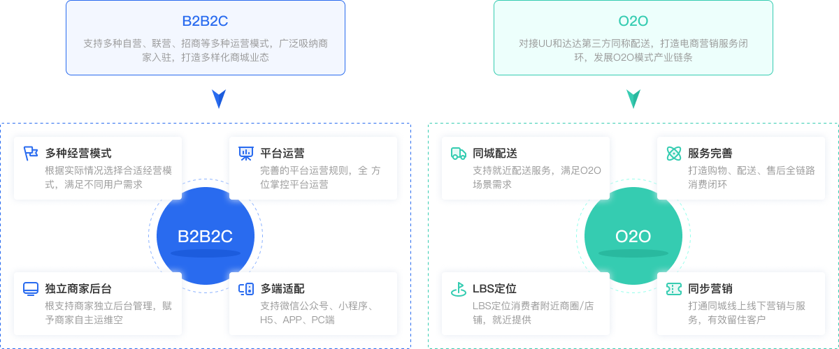 具备同城配送及众多数字化功能,助力传统实体商家结合线上线下运营,搭建O2O生态链条,拥抱新零售。