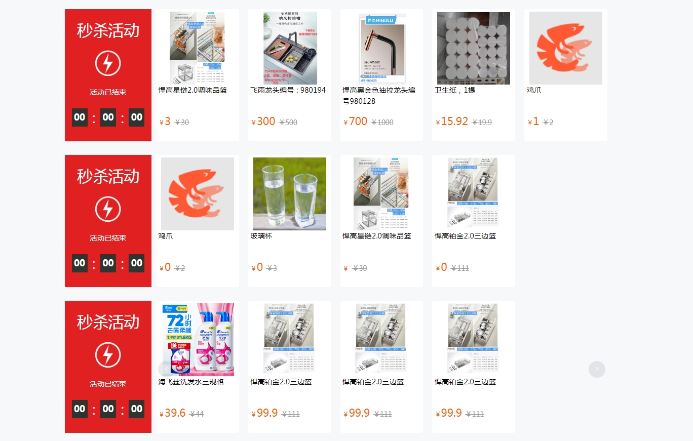 限时秒杀活动按期展示促销商品,而其它类型的店铺活动也拥有聚合页面,方便购买者找到价优商品。