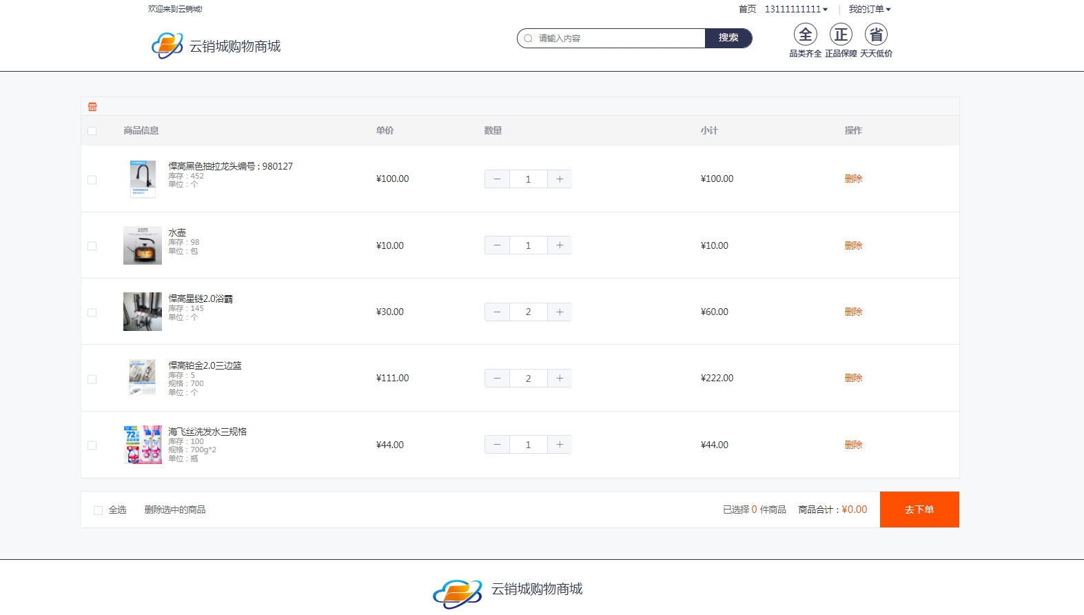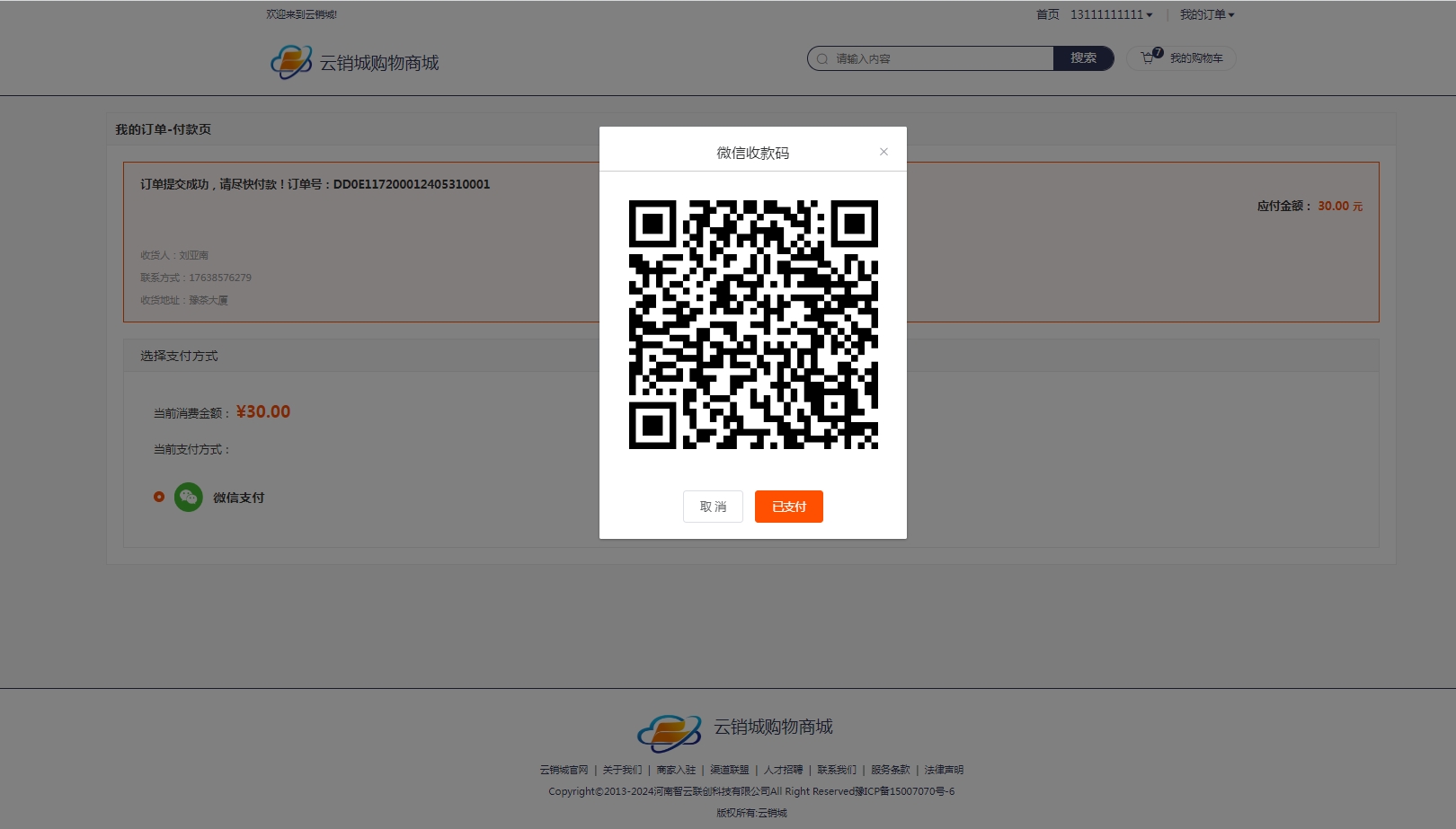 购物车支持各类商品下单,线下店、虚拟商品分单结算,支持支付宝、微信、预存款以及货到付款。