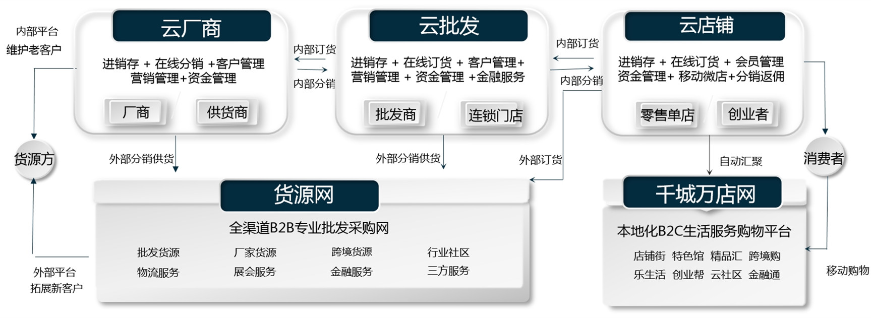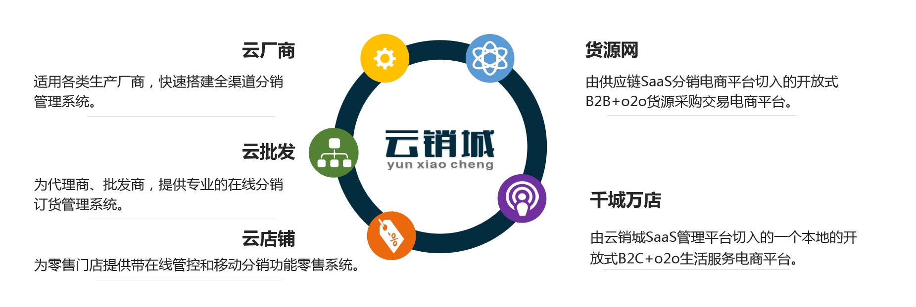 云销城包含供应链SAAS软件和电商智能服务平台,